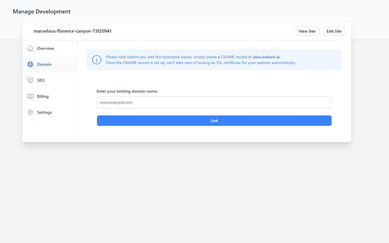 Absolutely! WebWiz.ai allows you to easily connect your custom domain.